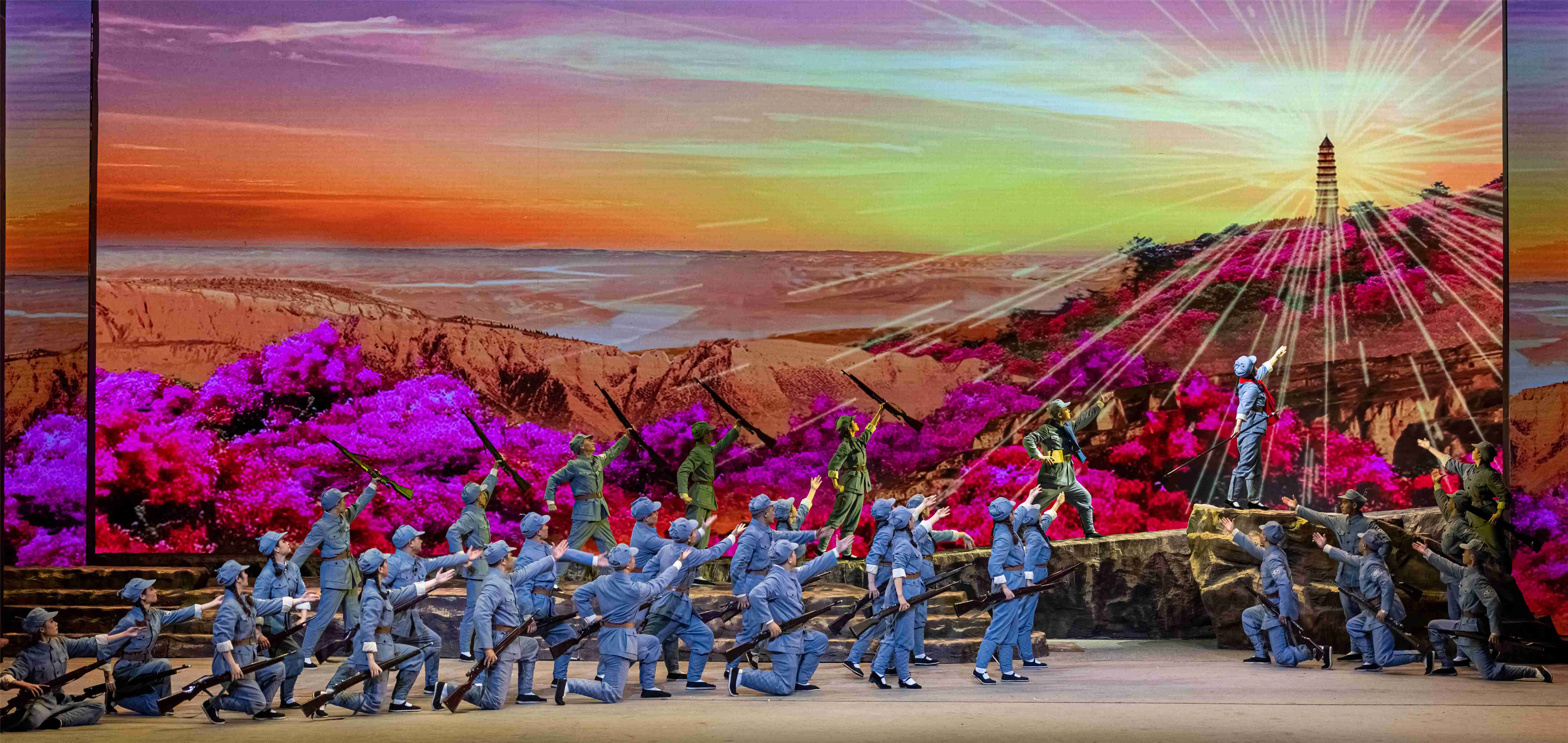《莫耶·延安颂》剧照 安溪县高甲戏艺术保护传承中心供图 晋江市掌中木偶艺术保护传承中心创排的《许书记借金记》讲述的是1949年初,中国人民解放军取得三大战役胜利,迅即自北向南举行全面的解放大进军,福建党组织为配合大军南下解放闽南,急需100两黄金作为战时经费。省委将筹金任务下达予闽中游击队,领回任务的许书记闻知晋江华表山草庵寺的住持广济法师筹攒善款,准备修缮寺庙。于是许书记乔装改扮将广济法师请下山,向其商借黄金。广济法师感其诚,信其诺,为国为民毅然借金。其时,国民党军警正在泉州城内外四处搜捕地下党。为将此笔黄金顺利送至闽中地委机关,广济法师和许书记与戏班群众同心协力,假戏送真金,瞒过国民党守桥的军警,最终将黄金顺利送出,完成党交付的重要任务。新中国成立后,许书记重信守诺,登寺还金。