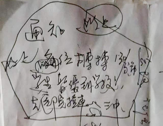 陈炜校长在病危时在纸上竭力写下的一则通知 学校供图 弥留之际,他心心念念的几乎仍是学校师生,自己心跳高得离谱,极度艰难的情况下,他写下了一则通知:心跳……厉害时……学生决不能上课… 要紧急……送医。2021年12月5日6时,陈炜校长因病医治无效,不幸逝世,享年54岁。有不少网友在各网络平台留言道:“一个好校长就是一所好学校”“校长那么年轻离逝太可惜了”“愿校长在天堂没有病痛”“陈校长离开了我们,但他永远活在我们的心中”……