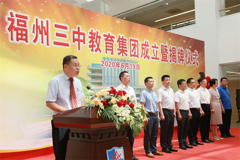 陈炜校长在福州三中教育集团成立暨揭牌仪式上致辞 学校供图 2020年6月19日,福州首个12年贯通的“混合模式”教育集团福州三中教育集团成立,由福州三中牵头发起成立,形成西湖校区、滨海校区、晋安校区等“一校三区”的大格局。福州三中教育集团是混合式教育集团,办学理念、师资培养等等全部需要重新架构。身为福州三中4个校区、近万人学校的校长,陈炜身上的担子更重了。他说:“实干出真知,学生发展等不起,没有等出来的精彩,只有拼出来的辉煌”。他马不停蹄带领众人调研,一校一方研策,将西湖校区“活力三中人文三中学术三中”的办学文化,“求真务实追求卓越”的办学思想辐射传播至集团各成员校,创新推出“思政一体化、管理精细化、课程结构化、教学精准化、资源产品化、环境智慧化”的六大学校建设支柱,提出“有坚定的理想信念、有高尚的人生品格、有顽强的奋斗精神、有扎实的创造才能”的四有集团育人目标。集团化办学过程中,他谋划教学数字化转变和教育转型;与北师大高精尖创新人才培育中心合作,提升师生格局和视野;提出五年规划,对年轻老师提出“倍速成长计划”、“春笋计划”;对中年教师提出“榜样计划”;对老教师提出“大先生计划”,开设“大先生”论坛,弘扬“大先生”精神;推进集团化办学高质量跨越式发展……有人做过统计,陈炜每周在各校区的行程是262公里,比从福州到厦门的距离还长。 以爱育德 五育并举,学生成长看得见 福州三中党委书记林晓枫说,跟陈炜校长共事的10多年时间里,对其提出的“爱让优秀看得见、爱让成长看得见”等教育理念十分赞同。陈炜校长对人的影响是潜移默化的,无形之中能给他人一种力量。
