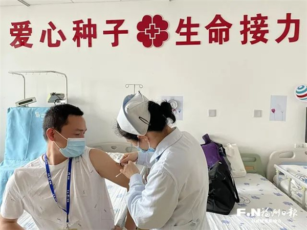 △叶钊斌注射第一针动员剂。(省红会供图) 叶钊斌,宁德市寿宁县人。叶钊斌的二胎宝宝在出生时就被查出患有先天性食道闭锁,就在几天前还因术后不良反应经历过抢救,正因为这样,他更能感受到生命的可贵。