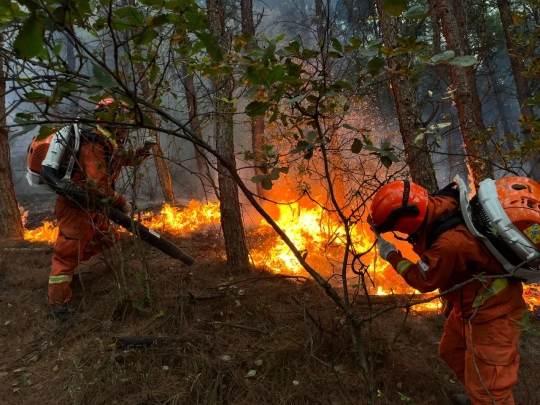 8月28日3时20分,广安市华蓥市高兴镇李子桠村发现一起森林火灾。灾情就是命令,四川省森林消防总队立即前指带凉山支队、特勤大队、应急通信与车辆勤务大队共222人34车紧急出动,前往广安华蓥市火场参与扑救。 同时还调度消防救援总队242人62车,华蓥、前锋、邻水专业队共52人,蓝天救援队57人,新兴救援队22人,矿山救护队17人,民兵542人参与扑救。南方航空护林总站西昌站1架米-171、成都站1架卡-32直升机前往火场进行火场勘察和吊桶作业。 抵达火场后,队伍立即调动无人机对火场进行全方位勘察。火场西线南段至南线至东线有约3公里断续火线,为稳进地表火,主要向东北方向蔓延。火场为山地地形,植被以松树和杂灌为主,东线主山脉坡度约60—70度。 按照现场联合指挥部的作战意图决定采取“打隔结合、两翼对进、钳形夹击”战术向东追歼和围堵火头。总队凉山支队从火场北线打开突破口后突破火线,向东扑打与特勤大队汇合;特勤大队从火场南线西段突破火线,向东扑打,与凉山支队在东线汇合;地方专业扑火队随凉山支队直属大队从火场北线突破,向西南方向扑打,与蓝天救援队在西线汇合。蓝天救援队及配属民兵随特勤大队从火场南线西段突破火线,向北扑打,与地方专业扑火队在西线汇合;至此形成全线合围。同时,11台挖掘机在火场东侧山脊一线开设防火隔离带,阻隔火头向东蔓延,全地形大功率水泵车在隔离带周围的植被进行增湿。 8月28日16时,火场东线、西线、北线已无明火,仅火烧迹地内有部分烟点;南线东段至东线中段目测有约1.5公里断续火线,伴有间歇性树冠火,线上有多处浓烟,山势陡峭植被茂密,海拔400至1150米,有多处断崖,给扑救工作增添不小难度。 20时30分,火场全线已无明显烟点火点,但无人机热成像勘察显示火烧迹地内有较多散状分布的热点,疑似未扑灭的地下火。 8月29日5时,各任务队伍按照昨日既定部署,从宿营地向各自任务区摩托化机动,对火场全线进行纵深清理,火场正进入看守阶段。同时,广安市气象部门已经做好人工增雨准备,已备作业车2台,人工增雨弹24枚。 8月29日9时许,四川省广安华蓥市高兴镇李子桠村境内突发的森林火灾已扑灭,火场进入纵深清理、看守阶段,确保火场实现三无。(徐瑞丰 付小华)