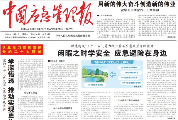 中国应急管理报头版头条刊发我省“五个一百”安全应急保障提升工程