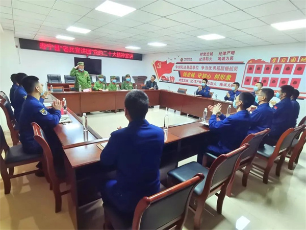 11月4日,由寿宁县许岩贵、郭尧惠、王庆华、李启诚等4名退役军人组成的“老兵宣讲团”深入县消防救援大队、青少年活动中心、妇联等单位,开展党的二十大精神宣讲活动。几位老兵为消防救援人员和干部群众宣讲了党的二十大召开的历史背景及其主要内容,解读了党的二十大报告中的新表述、新概括、新论断,以及重大战略、中国古语等,帮助消防救援人员和干部群众深入学习领会党的二十大精神。 周宁县退役军人事务局召开党组理论学习中心组扩大学习会,深刻领会党的二十大精神的核心要义,精准把握精神实质,结合各自工作实际谈认识,谈收获,分别提出了推进工作的措施。强调要深入开展调研,找准短板,精准施策,落实好“做好退役军人服务保障工作”这一光荣使命,把退役军人的急难愁盼问题解决到位,不断推动周宁县退役军人事务工作高质量发展。 近日,“全家福安”理论宣讲轻骑兵双拥分队走进宁德海警局福安工作站,宣讲党的二十大报告主要精神。活动中,福安市退役军人事务局副局长刘少希、双拥办副主任陈海铃与官兵们围绕“三个务必”“中国式现代化”“学习强军思想、建功强军事业”等主题展开学习、帮助大家进一步了解掌握新理念、新思想。宣讲员钟石木、雷寿玉表演了快板《喜庆二十大 奋进新征程》、郭颖等表演了《畲汉一家亲》等节目,以寓教于乐的形式宣讲党的二十大精神,在官兵中引发强烈反响。 柘荣县关爱退役军人协会召开党的二十大精神专题学习会,组织退役军人认真学习党的二十大精神,引导广大退役军人进一步统一思想、凝聚共识。协会会员们纷纷表示将珍惜荣誉,继续发扬退役不退志,退伍不褪色的精神,积极投身公益事业,为经济社会发展作出力所能及的贡献。 |