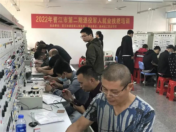 为有效提升退役军人定向技能,拓宽退役军人就业渠道,近日,晋江市2022年第二期退役军人就业技能提升班(电工<中级>)开班仪式在泉州轻工职业学院举行。共50名退役军人参加此次培训。