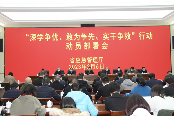 2月6日,省应急管理厅召开“深学争优、敢为争先、实干争效”行动动员部署会,厅党委书记、厅长伍斌作动员部署,厅机关各处室、驻厅纪检监察组全体干部和直属单位中层以上干部参加会议。 会议指出,省委部署实施“深学争优、敢为争先、实干争效”行动,是继开展“再学习、再调研、再落实”活动,实施“提高效率、提升效能、提增效益”行动后,再一次开展的年度性主题活动。全厅各级党组织和党员干部要按照省委部署安排,深入实施“深学争优、敢为争先、实干争效”行动,把自己摆进去、把职责摆进去、把工作摆进去,不断增强争优、争先、争效的高度自觉,进一步强信心、鼓干劲、提精神,扎扎实实做好应急管理各项工作,以实际行动坚定拥护“两个确立”、坚决做到“两个维护”。 会议强调,要以更高的政治站位,大力实施“深学争优、敢为争先、实干争效”行动。一是深学争优,争当理论武装的“优等生”。要在全面学习、全面把握、全面落实上下功夫,明确学习重点、丰富学习方式、坚持学以致用,做到全厅成为贯彻落实习近平总书记重要指示的排头兵,厅领导成为深学细照笃行的表率,党员干部成为理论武装的标杆。二是敢为争先,争当敢拼会赢的“先行者”。要在发扬斗争精神上下功夫,争第一、创唯一、树标杆,力争安全生产和消防工作考核巡查、安全生产指标、业务工作走在全国前列,机关党建工作走在省直机关前列,绩效考评工作走在省直监管与服务类政府工作部门优秀等次前列。三是实干争效,争当务求实效的“实干家”。要从强化绩效考评入手,解决工作标准不高问题;从说办就办、急事急办、特事特办入手,解决慢热拖沓问题;从强化责任心、增强敏感性、提升敬畏感来突破,解决“温吞水”问题;从明职责、重协调、强落实来攻坚,解决推诿扯皮问题。 会议强调,要以更强的政治担当,认真落实省委省政府决策部署,切实提升应急管理工作质量与效能。一是提升政治站位,坚持统筹发展和安全,坚持依法治安、科技兴安、人才强安,绷紧防范化解重大安全风险之弦,坚决防范遏制重特大事故发生。二是压实安全责任,拧紧层层跟进的责任链条,完善科学精准的考评体系,强化应对有力的动态监管,落实赏罚分明的问效机制。三是创新制度机制,强化更严的整治机制,完善更优的法治路径,建立更顺的联动系统,实施更强的基层应急管理体系和能力建设,构建大安全大应急工作格局。四是强化数字应急,建立协同联动的数字应急综合应用平台,开发精细专业的应用系统,提高科学精准的大数据应用分析水平,建立实用有效的安全宣教体系,持续提升应急管理科学化水平。五是增强素质能力,提振精气神,增强责任心,提升硬本领,打造铁作风,打造忠诚干净担当的应急管理铁军。 会议要求,要强化组织领导,形成全厅上下一盘棋,认真履职、通力协作、培树典型,推进各项工作任务高质量完成。要强化跟进实施,健全“月度推进、季度点评、半年分析、年终总结”推进机制,不断夯实工作基础。要强化重要抓手,以开展“安全应急效能年”提升活动为抓手,以“三个争当”为目标,以“七个提升、七个突出”为重点,以抓实5项重点工作、14项重要任务和20项重要事项为切入点,推动应急管理工作提质增效。要强化业绩考核,加强绩效考评,加强跟踪推进,加强结果考核,坚持正确用人导向,为担当者担当、为负责者负责、为干事者撑腰。要强化宣传引导,广泛宣传实施行动的经验做法、先进典型和显著成效,营造比学赶超、争先奋进的浓厚氛围。