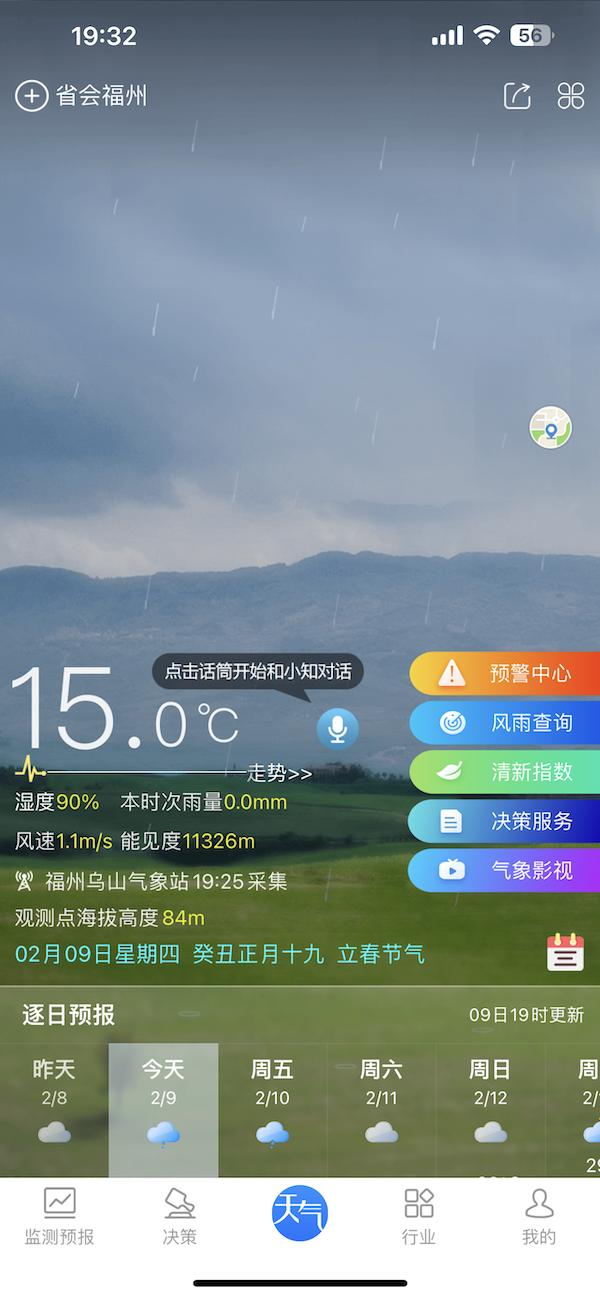 知天气App首页截图 全国首批 迭代升级不止步 用户已超400万 “知天气”是国内气象部门最早推出的官方气象服务手机客户端产品之一,2011年9月正式上线1.0版本,2015年改版后2.0正式上线,2016年、2017年持续优化功能、迭代升级,2018年启动属地化定制服务。当前正在运营的是2020年改版上线的“知天气”3.0版本。 福建省气象服务中心高级工程师汪春辉,是“知天气”App开发团队的技术负责人。他告诉记者,“可以说是年年有发展,岁岁有提升。”发展至今,知天气App取得软件著作权5项,发表论文4篇,并于2016年9月,入选“数字福建”信息化精品工程。 福建省气象服务中心副主任黄志刚表示,省气象局打造“知天气”App,旨在优化人民美好生活气象服务供给,助力提高人民群众获得感、幸福感、安全感,目前用户数量已经超过400万。 功能强大 数据精确 覆盖全国多省市 “光是省内气象观测站、监测点就有2000多个。”汪春辉介绍。记者打开“知天气”App看到,在福州市内,定位能够精确到当前所在街道,并提供附近观测点的具体气象数据,不仅有常规的晴雨现象和温度,还包含了风速、湿度、能见度等实时数据。 “知天气”App不仅是监测福建全省天气的“气象专家”,也同样是预报全国各地天气的“行家里手”。用户可以添加关注地,实时查收当地天气信息。“目前‘知天气’能够获取到2000多个省外监测站的数据。这是通过联动全国各省市气象部门实现的,因为各地会将数据上传。”汪春辉说。