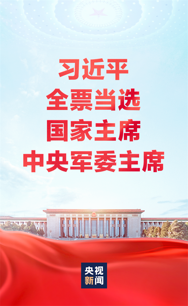 习近平全票当选为中华人民共和国主席、中华人民共和国中央军事委员会主席。