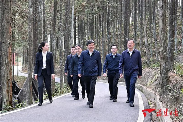 17日,周祖翼在宁德周宁县七步镇后洋村黄振芳家庭林场调研。 年年春自东南来。作为习近平总书记2021年3月考察福建的第一站,南平始终牢记习近平总书记的殷殷嘱托,踔厉奋发、拼搏奋进,用推动高质量发展的实干实效谱写出一曲曲春天的回响。 南平宜种茶、出好茶,是中国茶类最为齐全的茶产区之一。作为白茶核心产区的政和县因茶得名,茶产业全产业链产值已超40亿元,带动全县十几万茶农增收。在政和白茶城营销运营服务中心,周祖翼饶有兴致地了解当地茶产业发展和白茶城展示交易、仓储管理、检验认证及茶园环境监测等情况,希望当地统筹做好茶文化、茶产业、茶科技这篇大文章,推进科技兴茶,严格检验检测,提高产品质量,积极开拓市场,用“一片叶”成就一个产业、富裕一方百姓。