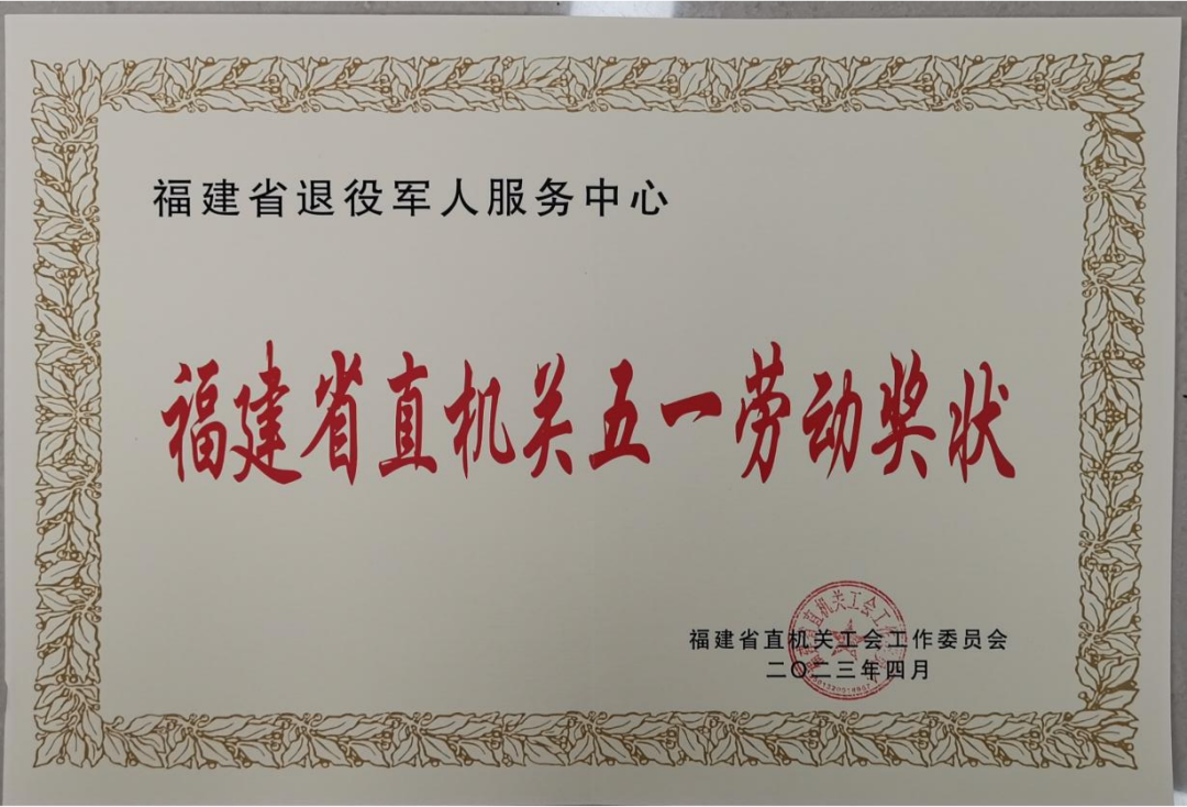 喜报!省退役军人服务中心获“福建省直机关五一劳动奖”