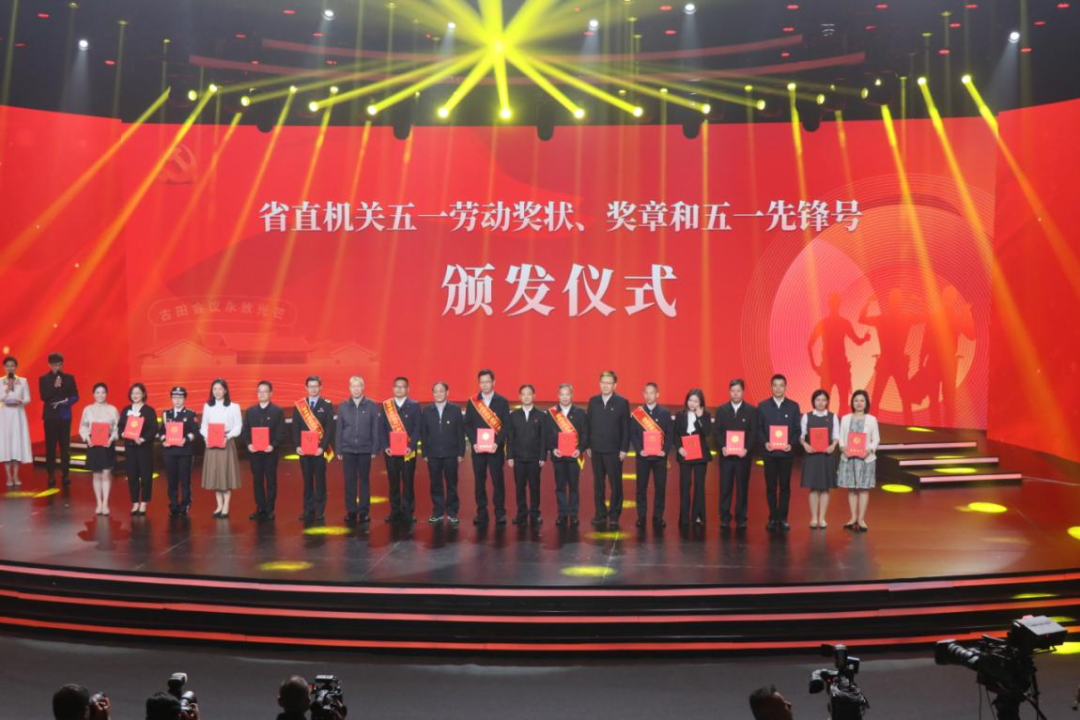 为深入学习宣传贯彻党的二十大精神,深入实施“深学争优、敢为争先、实干争效”行动,大力弘扬劳模精神、劳动精神,展现广大省直机关干部踔厉奋发、笃行不怠的良好风貌,4月27日,省委学习贯彻习近平新时代中国特色社会主义思想主题教育领导小组办公室、省委省直机关工委主办,省直机关工会工委承办“奋进的春天”——省直机关“争优争先争效·书写时代华章”主题党日活动。活动当晚为今年省直机关获得全国五一劳动奖状、省劳动模范(先进工作者)、省直机关五一劳动奖状的代表颁奖,省退役军人服务中心荣获“福建省直机关五一劳动奖状”。