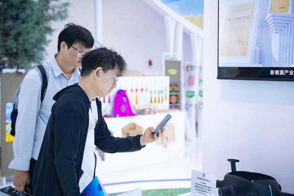 5月10日,游客拍摄2023年中国品牌博览会青海馆展出的碳纤维产品。