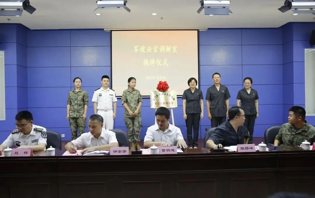 军嫂法官调解室揭牌仪式。 心理健康引导和法律咨询服务,是部队需要补充的力量。厦门和泉州两地想部队之所想,将服务台设在了连队上。 “幸亏有军嫂法官的及时调解,帮我解除了婚姻‘红灯’。”日前,福建省厦门市驻军某部军官小马来到营区“军嫂法官调解室”,感谢军嫂法官助理覃娟帮助他与妻子重归于好。 近年来,厦门市赓续双拥光荣传统,积极探索拥军新举措,与驻军部队签订共建协议,成立“军嫂法官调解室”、设置“编外指导员”、开通涉军法律咨询热线等,切实为军人军属纾困解难。 作为“双拥+”品牌,2016年泉州市双拥办启动了拥军心理服务,并时刻关注驻泉部队官兵的心理健康。数年来,泉州市为驻泉部队官兵提供心理咨询、心理体检、心理讲座、团体培训等各类服务。 2022年下半年以来,泉州市已为驻泉部队安排了专业心理知识讲座9场,协助驻泉部队完成自身心理骨干培训6场,提供心理咨询30人次,除此之外,还有一条24小时心理咨询热线0592-2108013,常年为现役官兵、军休干部和优抚对象服务,累计服务3千余人次。 “以小阵地践行大服务”