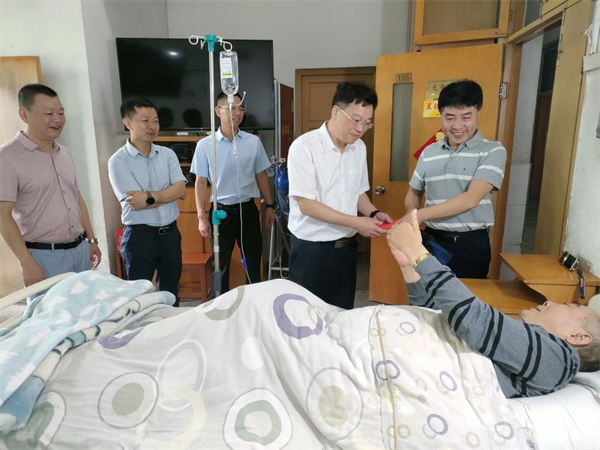 7月31日,蔡静南副厅长一行前往荣军医院病房逐一看望荣军休养员并送上慰问金