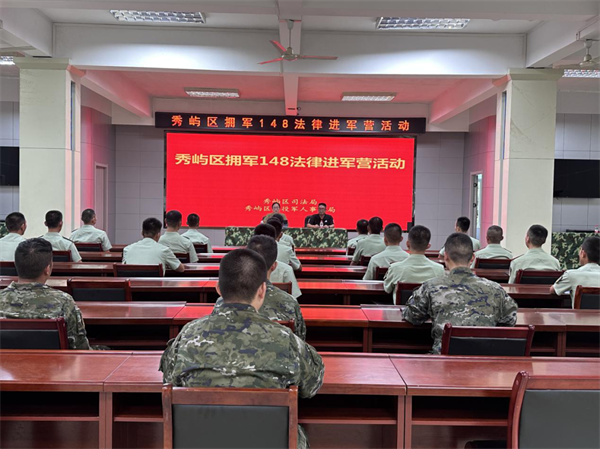 活动邀请福建鹏翼律师事务所主任黄庆焰律师向部队官兵解读《中华人民共和国军人地位和权益保障法》《中华人民共和国英雄烈士保护法》等相关政策,并为官兵送上法律书籍,帮助官兵释疑解惑。 城厢区退役军人事务局有关负责人表示,此次联合相关单位到部队开展“送法进军营”活动,目的是为了让部队官兵学法懂法,善于依法办事,帮助官兵解决家庭涉法疑难问题,让官兵安心部队强军练战。 秀屿区 8月14日,莆田市秀屿区司法局联合区退役军人事务局前往武警某部开展“拥军148法律进军营”活动。