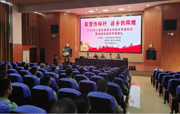 “退伍回到家后,退役军人事务部门就组织开展针对退役士兵适应性培训,让我对自己的职业规划有了更清晰的定位,很及时、很受用!”9月8日,一名沙县区退役士兵参加了适应性培训后,对当地退役军人事务部门的暖心举措连连点赞。 连日来,我省各地退役军人事务部门组织开展退役士兵适应性培训,为退役士兵搭建多元服务平台,提高退役军人职业技能水平和就业创业能力,使他们顺利完成从“战场”到“职场”的角色转变,助力退役士兵高质量就业创业。 沙县区 为帮助退役士兵尽快适应地方工作环境,近日,三明市沙县区2023年退役士兵返乡欢迎仪式暨适应性培训开班典礼在三明市农业学校举行。2023年退役士兵共52人参加本次培训。