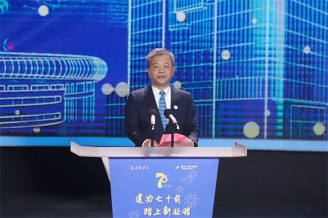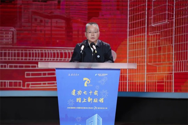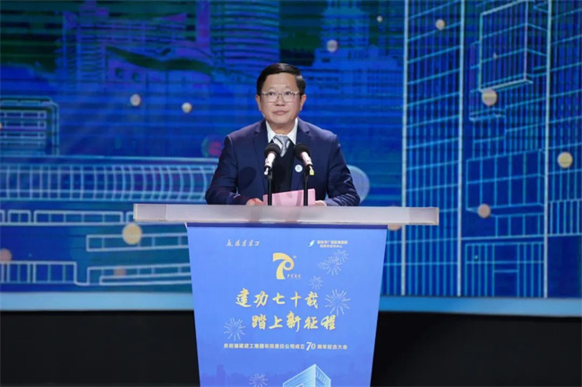 张金霖代表省国资委致贺词,向建工集团及广大职工表示热烈祝贺,对建工集团成立70年来在改革发展谋突破、履职尽责担使命等方面的辉煌成就表示赞赏。他指出,建工集团始终不忘初心、牢记使命,以改革尖兵的姿态,以“敢为天下先”的热血和魄力,在高质量发展之路上勇立潮头,在基础设施建设、房地产等领域落棋布子,实现了从弱到强,从单一业态到多元经营、全面发展的历史性跨越,稳步成长为省内建筑行业整体实力最强的省属龙头骨干企业。张金霖表示,希望建工集团继续在服务“四大经济”中走前头、作表率,积极融入构建新发展格局,完整准确贯彻落实新发展理念,在加快构建生态文明体系、全面推进乡村振兴等一系列新决策新部署的贯彻落实中担当重任、积极作为,以实干实绩谱写福建国资国企高质量发展的锦绣华篇。他表示,省国资委将一如既往鼓励和支持建工集团谋求更大的发展,持续推动实现“成为具有国际竞争力的投资建设运营商”的企业愿景。