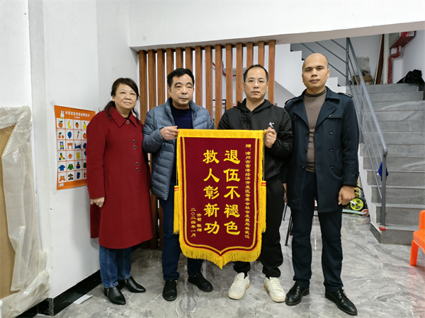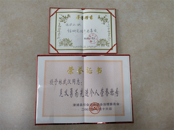 1月3日下午,落水男童的父亲(左一)与男童的爷爷到林武汉(左二)的单位送上锦旗表达感恩(右一:林武汉的单位领导) (图片来源:漳浦县退役军人事务局) 至此,一段救人佳话在当地传开。实际上,林武汉一直是一个热心助人、和蔼心善的“好大哥”。早在2002年上半年某天上午10点左右,家住在漳浦县医院家属院二楼的林武汉,当时刚回到家,就听到外面传来“抓小偷!……”的声音,林武汉果断跑下楼,看到2位近50岁的医院联防队工作人员在追小偷,29岁的林武汉奋力直追小偷至县医院东门对面路边,才把小偷逮到,并移交公安民警,后经公安局了解到,该小偷是流窜犯。事后,林武汉被当地表彰为“见义勇为先进个人”。 “能帮助到别人,是一件很快乐的事情,能尽自己能力帮他人一个忙,也是一种缘分!”从林武汉口述中可以感受他的朴实和善良。