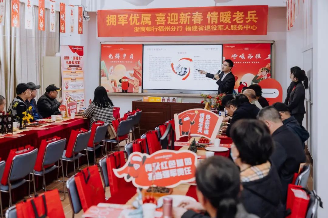 新春佳节来临之际,省退役军人服务中心联合浙商银行于近期开展一系列“喜迎新春·情暖老兵”主题公益活动,为退役军人和其他优抚对象送上新春祝福,将党和政府关心关爱传递到更多老兵心坎上。 一场招聘活动 1月19日,省退役军人服务中心协同浙商银行举办“拥军优属 喜迎新春 情暖老兵”新春茶话会,邀请30余名自主择业军转干部参加。浙商银行在向军转干部普及金融知识的同时,发布一批优质岗位专门面向退役军人,助力退役军人高质量就业。