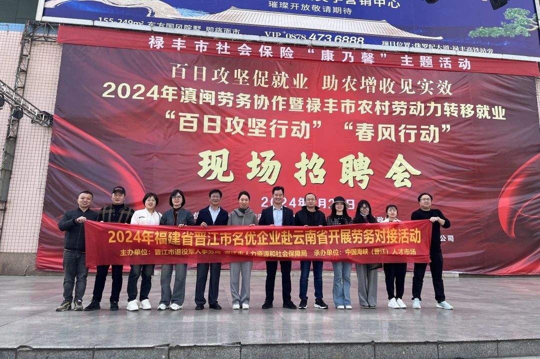 为助力企业开好局、迈好步。2月19日-23日,由晋江市退役军人事务局、市人社局、企业与企业家联合会、晋江海峡人才市场组成的招工“小分队”抢抓返岗“高峰期”、招工“关键期”,与华联、星食代、兴业皮革、旭升广告等8家企业人事负责人一起前往云南省楚雄州开展跨省劳务协作,全力助力企业节后顺利开工,实现“开门红”。