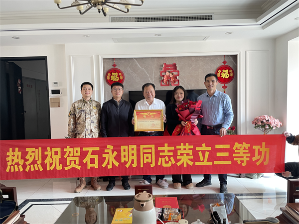 为现役军人三等功获得者石永明家属送喜报 2月21日,送喜报小分队来到云霄县云陵镇渡头嘉园,为三等功获得者石永明家属颁发喜报、佩戴绶带、送上鲜花及慰问金。县退役军人事务局领导与军属亲切交谈,详细了解军属的生活近况,感谢他们为部队培养了一名新时代优秀军人,为国防事业输送了一名优秀人才。同时,希望他们一如既往地支持和鼓励石永明同志立足本职岗位、安心服役、服从命令、听党指挥,发扬部队光荣传统、再创佳绩,再立新功。