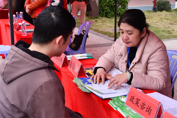 退役军人找到心仪的工作岗位 “原计划元宵节过后出门找工作,提前收到县退役军人事务局微信通知今天有招聘活动,经过咨询了解,刚与一道新能源科技(漳州)有限公司签订了就业意向书,实现了家门口就业。”退役军人方海山找到自己心仪的工作岗位,开心地与朋友说道。
