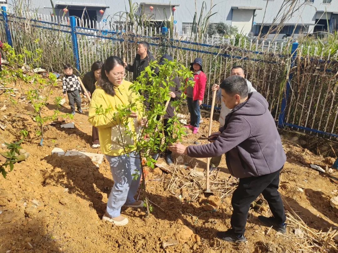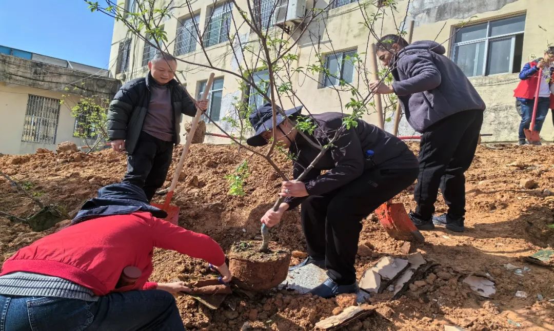 植树现场,厅党员干部干劲十足,瞄准让乡村校园“绿起来、美起来”的目标,挥锹铲土、扶直苗木、培实新土。在一派热火朝天的劳动景象中,一株株新栽下的树苗迎风而立、充满生机,为春日的乡村校园增添了一抹新绿。