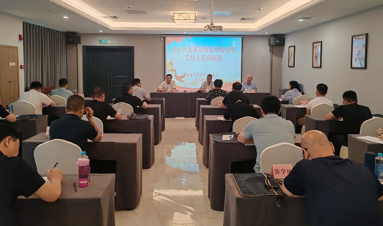 日前,福建省2024年转业军官档案审查接收业务培训班在福州圆满结束。部分设区市委组织部,各设区市退役军人事务局,各军兵种驻闽转业移交办联络员共计40余人参加业务培训和档案审查移交工作。