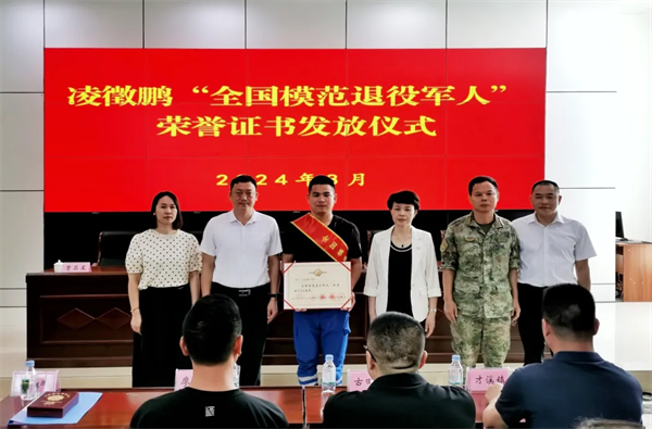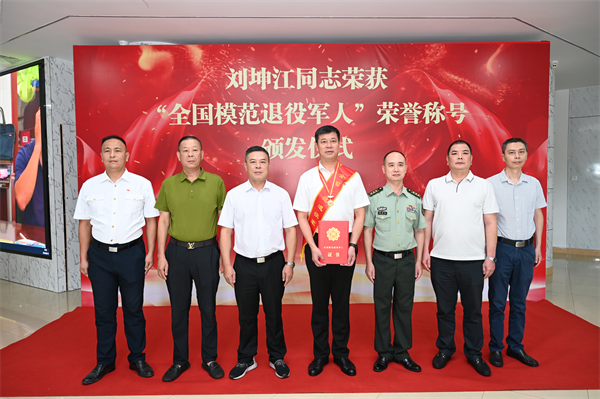 8月13日上午,漳州市退役军人事务局到漳浦县司法局为刘坤江同志颁发证书,漳州市退役军人事务局党组书记、局长张国海,漳浦县委常委、县人武部政委张建华为刘坤江分别颁发奖状、奖章并赠送鲜花。市、县退役军人事务局、县司法局相关科室负责人,绥安镇领导等代表共同见证荣耀时刻。 刘坤江说:“将珍惜这份来之不易的荣誉,珍惜‘奋斗出来的幸福’,始终坚持发展新时代‘枫桥经验’,以模范带头作用为家乡建设多作贡献,用退役军人表率、全力维护辖区社会和谐稳定,让党和政府放心,让人民群众满意。” 莆田市