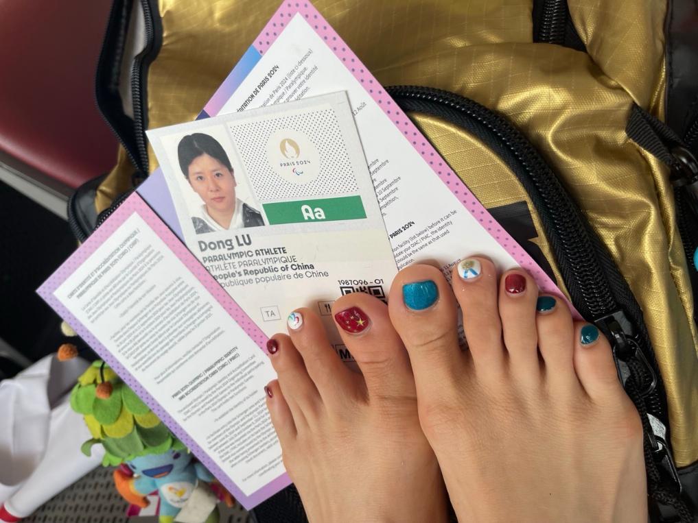 钱王伟的美甲。新华社记者 胡佳丽 摄 被誉为“无臂美人鱼”的卢冬也在出发巴黎前定制了专属美甲。“首先是我们的国旗,给我来点‘加成’。这个是我们残奥会的会徽,我希望大家更多地关注残奥会、更多地了解我们,也希望全世界有更多残疾人朋友能通过这个舞台看到我,可以勇敢自信地走出家门,在各个行业里发光发热。” 卢冬的右脚大脚趾涂着亮晶晶的蓝色。蓝色是她的幸运色,是泳池池水的颜色,她的泳衣和耳钻也常常是蓝色的。在她擅长的手游《王者荣耀》中存在红色和蓝色“Buff”,可以达到重要的增益效果。其中,蓝色“Buff”能够显著增加英雄的法力值恢复速度、减少技能冷却时间,它可以确保英雄在战斗中不会因为法力值不足而陷入困境,从而提高其战斗力和输出能力。 “就给自己叠个蓝‘Buff’吧。”卢冬说。