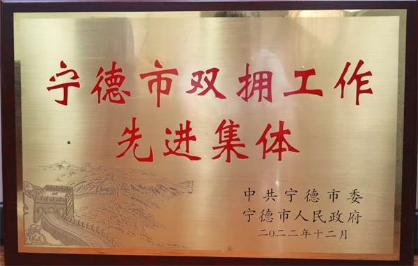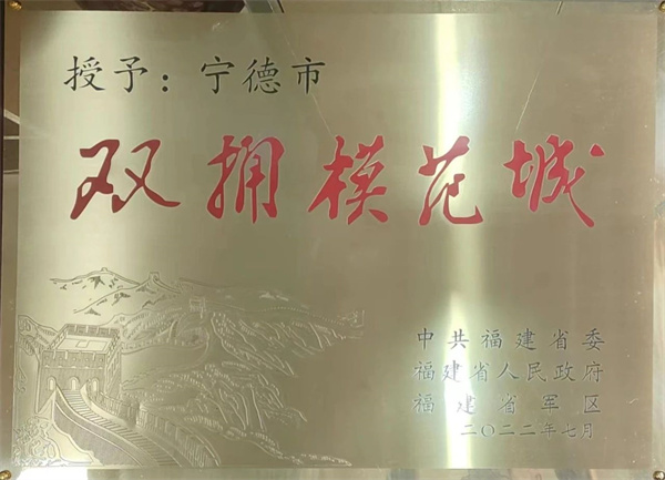 双拥模范城奖牌 全链条构建服务保障体系 近年来,宁德市退役军人事务局始终坚持党对退役军人工作的全面领导,全链条推进“三个体系”建设,不断打牢退役军人工作发展的基层基础。 健全组织管理体系。宁德市委、市政府高度重视退役军人工作,市县两级同步成立党委退役军人事务工作领导小组,全面调整优化双拥工作领导小组。按照“市、县、乡、村四级五有”全覆盖的要求,设立退役军人服务中心(站)2500家,建成全国示范型服务中心(站)155个、全省红色退役军人服务站15个,形成党委领导、政府主导、服务体系支撑、社会力量参与的组织管理体系。 规范工作运行体系。融入中心大局,将退役军人和双拥工作纳入地方党委政府领导班子综合考核评价内容。推进工作创新,组织业务培训,开展业务技能比武,着力培养一支唯实惟先、善作善成的退役军人工作铁军。宁德市退役军人服务中心(站)系统紧盯自身能力建设,每年组织开展业务培训、岗位大练兵活动等,不断建强队伍提升服务水平。目前,李日伟、郑建容2名同志获评“全国百名优秀主任(站长)”,宁德市退役军人事务局陈丽丹同志获评“全国退役军人服务保障先进个人”。推动数字赋能,用好省退役军人管理保障平台,实现“军人退役一件事”等业务事项全流程网上办理。 完善政策制度体系。出台《宁德市退役军人事务局关于印发优待证申领发放工作实施方案的通知》《宁德市退役军人事务局等8部门关于印发<宁德市退役军人和其他优抚对象免费乘坐公交车和免门票游览景区实施方案>的通知》等服务备战打仗、支持就业创业、强化优抚褒扬的政策文件,编制《宁德市退役军人事业“十四五”规划》,搭建起宁德市退役军人政策法规的“四梁八柱”。推行《退役军人服务事项标准化指南》《退役军人服务事项标准化流程》,积极探索“难题化解+困难帮扶+营造尊崇”工作模式,创新慰问在先、援助在先、扶持在先、教育在先、推崇在先的“五在先”工作法,来访接待“九个一”服务标准,满腔热忱为退役军人服务。 全过程助力退役军人作用发挥 近年来,宁德市退役军人事务局积极打造闽东退役军人工作品牌,广泛开展“我为老兵办实事”活动,多措并举引导退役军人成为服务经济社会发展的坚强力量。 思政引领和权益维护同向发力。加强退役老兵思想政治引领,持续组织开展“老兵永远跟党走”“我与老兵面对面”等活动。宁德市军休所军休干部坚持老有所为,组织开展形式多样的党日活动,并通过线上学习平台加强政治学习,切实提高军休干部思想政治素质。大力开展先进典型选树活动,共评选出3名“全国模范退役军人”、4名福建省“最美退役军人”、22名宁德市“最美退役军人”。完善常态化联系工作机制,将功臣模范、伤残人员、参战参试人员、烈士遗属、特困退役军人和信访矛盾突出人员等六类重点人员1068人纳入常态化联系,开展感情联络、心理疏导、思想引导、帮扶援助等工作。持续开展省级一次性临时救助申请工作,2021-2023年共争取省级一次性帮扶资金333万元,帮扶468人次,让更多退役军人得到关爱和帮助。