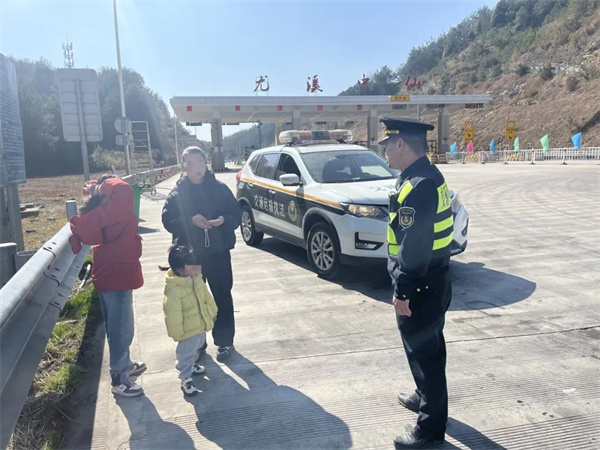 接到报警后,执法员迅速赶到现场,设置警示标志,引导后方车辆有序绕行,防止二次事故的发生。同时,执法员耐心地安抚母女三人的情绪,将她们安全转移至执法车上,协助路勤人员将故障面包车成功拖离隧道,并一路护送母女三人至就近的尤溪中仙收费站。