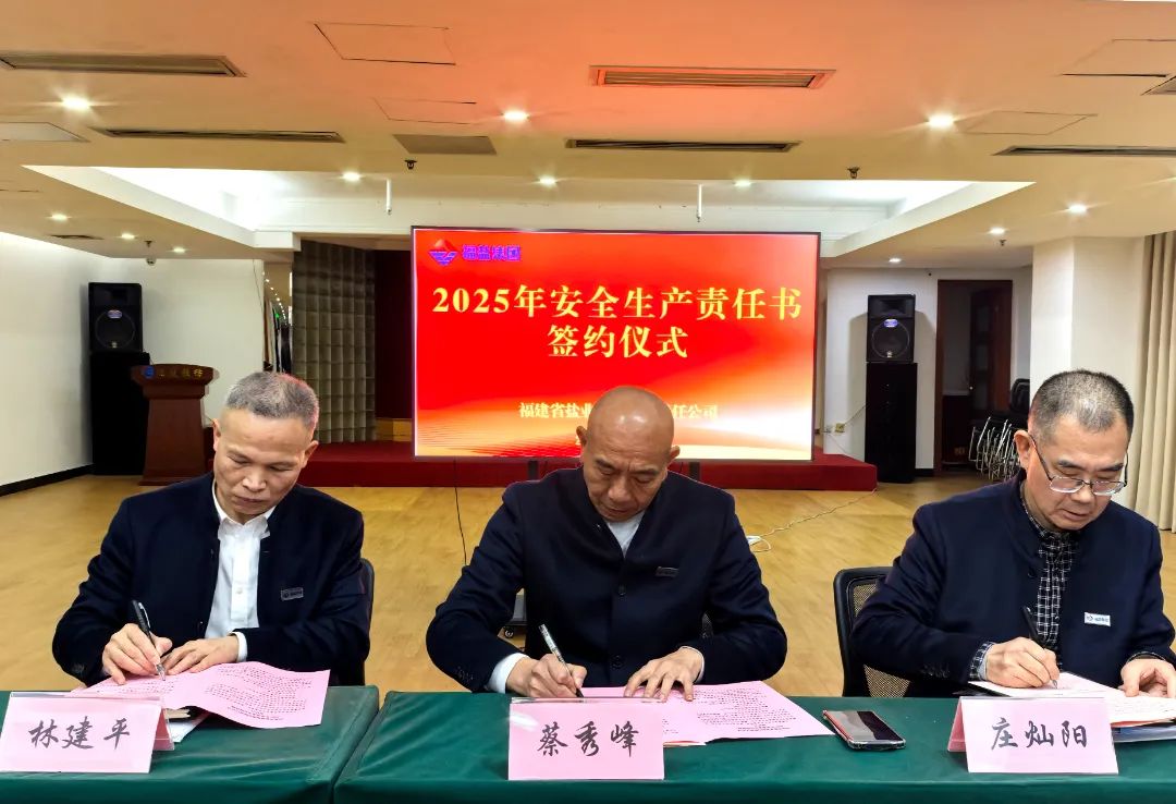 会议强调,2025年是“十四五”收官和“十五五”谋划的关键之年,福建盐业各权属企业、各部门要坚持问题导向,精准识别并有效解决工作中存在的问题;坚持目标导向,迅速响应会议部署,加强内部沟通与协作,确保既定目标顺利达成;坚持结果导向,严格落实责任机制,崇尚实干与实效;坚持守正创新,以创新驱动发展,高质量完成“十四五”规划目标任务,为“十五五”规划的良好开局奠定坚实基础。 会议最后,集团公司与各权属企业负责人分别签订2025年度安全生产目标管理责任书及2025年度食品安全目标管理责任书。