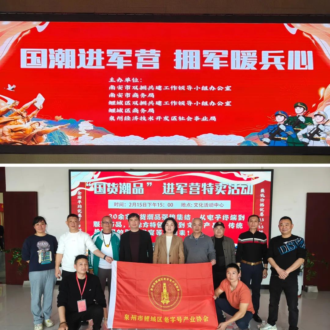 2月15日,泉州市鲤城区双拥共建工作领导小组办公室、鲤城区商务局、南安市双拥共建工作领导小组办公室、南安市商务局、泉州经济技术开发区社会事业局联合相关品牌企业开展“国货潮品”进军营特卖活动。
