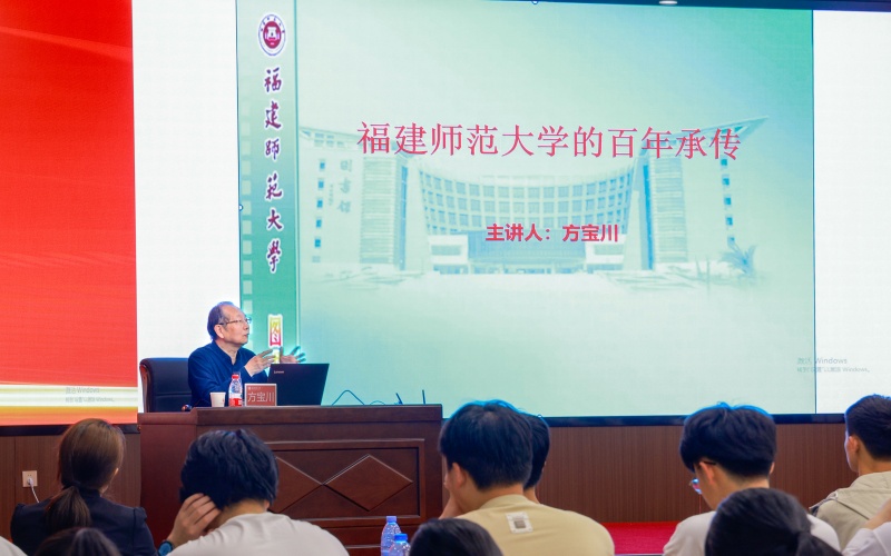 校图书馆原馆长方宝川教授做校史讲座 校图书馆原馆长方宝川教授为现场师生带来一场精彩的校史校情讲座。他结合珍贵史料与人物故事,深入剖析学校办学历程中的师范传统与文化基因,并寄语宣讲团成员:“校史不仅是过往的记录,更是未来的指引。希望你们用青春的语言,让校史故事焕发时代新声。”
