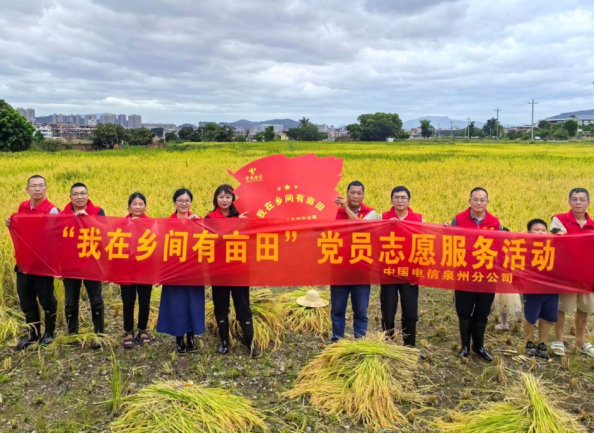 党员志愿者合影留念 “责任田“背后的乡村振兴蓝图 这场抢收行动,是泉州分公司党员志愿服务活动的一个缩影。通过“我在乡间有亩田”认领认种项目,党员们用脚步丈量土地,用汗水守护粮仓。它不仅盘活了抛荒田,提升了土地效益,更搭建了一座连接企业与乡村的桥梁。陈凌燕强调:“这座桥把抛荒田复耕和电信企业的助农力量连在了一起。”如今,这座由责任与汗水浇灌的“连心桥”,正为服务乡村全面振兴开拓更广阔的实践空间。 |