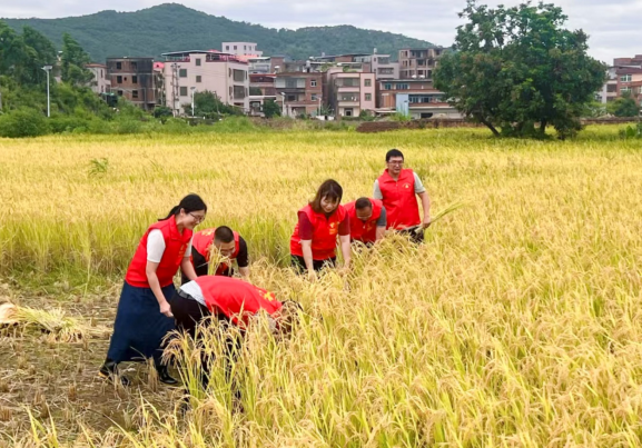 党员志愿者们抓紧抢收水稻 7月18日,福建省气象台发布“台风预警Ⅳ级”,省防汛指挥部同步启动防台风Ⅳ级应急响应。露江村的稻田顿时成为焦点:这片金黄稻穗是中国电信泉州分公司党员通过“我在乡间有亩田”项目认领的“责任田”,承载着露江村村民收入和土地复耕的希望。风雨欲来,村民心头压上巨石——台风可能导致稻谷倒伏、绝收。消息传至泉州分公司,一场抢收行动迅速部署。分公司立即号召:“必须抢在台风前收完!” 时间就是粮食,党员就是先锋 7月19日,周末的宁静被打破。一支由泉州分公司党员组成的志愿服务队集结完毕,直奔露江村稻田。在省公司派驻该村的第一书记陈凌燕带领下,志愿者们换上雨鞋,二话不说扎进田间地头。没有豪言壮语,只有弯腰挥镰的沙沙声、传递稻捆的吆喝声。汗水很快浸湿了衣衫,泥点沾满了裤腿,但手上的动作一刻不停。党员老张边抹汗边感慨:“平时在机房、在客户跟前服务,今天在田里‘服务’粮食,感觉不一样,但一样有意义!”金黄的稻穗被一束束割下、传递、归拢,现场热火朝天。陈凌燕脸上露出了欣慰笑容,她深知这场行动不只关乎收成,更激活了抛荒地复耕,为村里带来实实在在的收入。