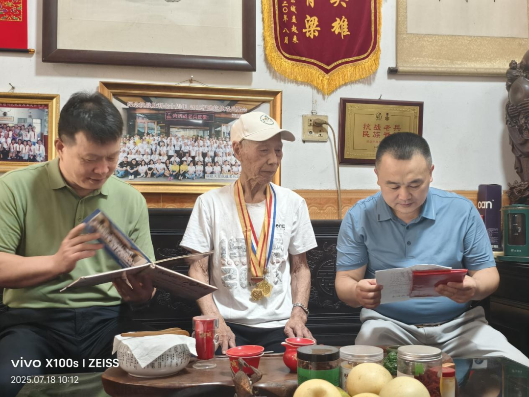 慰问组一行首先来到100岁的老兵王庆仙家中,老人虽已百岁,但精神矍铄,他取出珍藏多年的军功章和泛黄老照片,向慰问组讲述起那段浴血奋战的烽火岁月,在场人员无不为之震撼和动容。