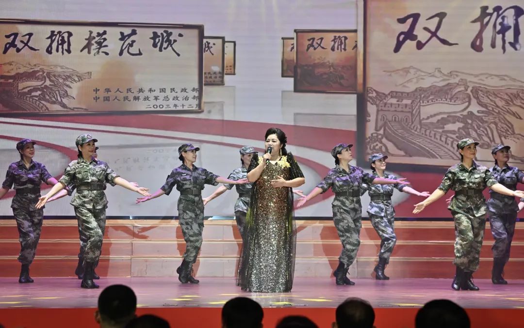 一级演员赵秀兰 演唱歌曲《榕城军民情》, 歌声涌动军地军民共建的 勃勃生机, 展现双拥之城美丽画卷。