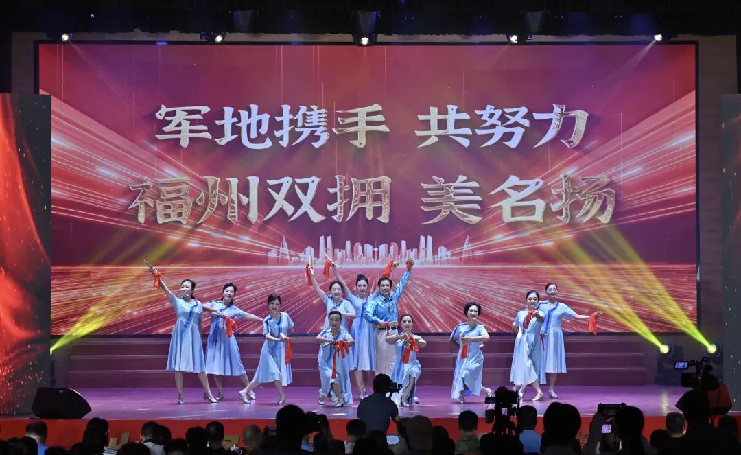 闽江潮涌,见证双拥荣光; 山海相依,军民团结同心。 7月28日下午,福州市退役军人系统庆祝中国人民解放军建军98周年文艺汇演在驻榕部队某部礼堂举行。由福州退役军人、驻榕部队官兵自编自导自演、市闽都文化艺术中心倾情参与的14个节目精彩上演,通过歌唱、舞蹈、锣鼓、快板、诗朗诵等丰富多彩的艺术形式,激情礼赞中国共产党领导下的英雄军队,奏响爱我人民爱我军的时代新篇。