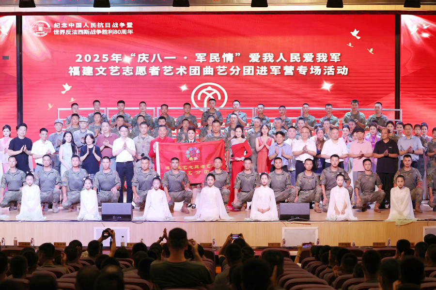 为纪念中国人民抗日战争暨世界反法西斯战争胜利80周年,庆祝中国人民解放军建军98周年,用文艺的形式弘扬伟大抗战精神,唱响“爱我人民爱我军”的时代强音,持续推动优质文艺资源直达基层活动深入开展。近日,由福建省文联指导,福建省曲艺家协会、平潭综合实验区文联、驻闽部队某部联合主办,福建文艺志愿者艺术团曲艺分团等单位承办的“庆八一·军民情”——福建文艺志愿者艺术团曲艺分团进军营专场活动在平潭综合实验区举行。省文联主席陆开锦,省文联党组成员、秘书长许瑞生,平潭综合实验区党工委委员、区公安局局长陈毅坤,驻闽部队某部领导,省曲协主席陈晓岚、副主席陈成凯、驻会秘书长陈湧,平潭综合实验区文联党组书记、主席胡东荣及部队官兵代表、共建单位、文艺志愿者等近500人参加专场活动。
