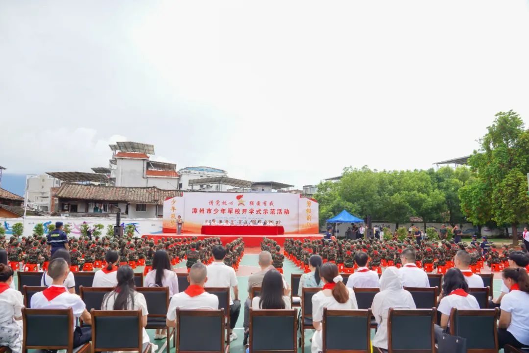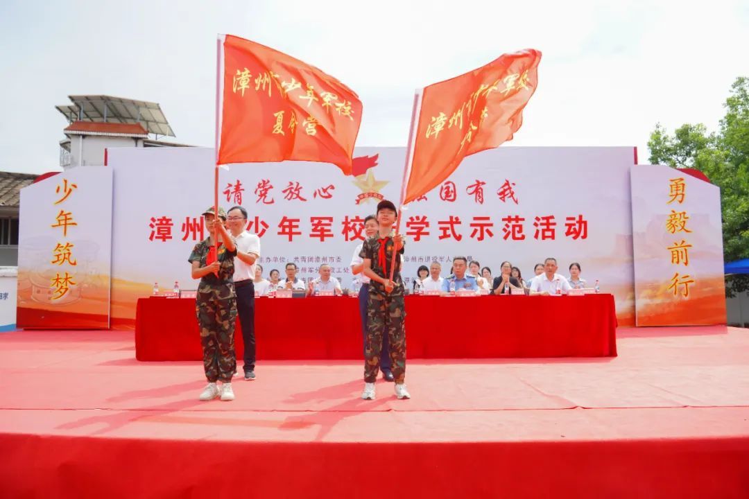 在庄严的升旗仪式和嘹亮的国歌声中,开学式拉开帷幕。少先队员代表献词后,军地有关领导共同为少年军校揭牌,并向营员代表授予少年军校营旗,宣告漳州市少年军校正式启用。 “少年军校是深化青少年国防教育、促进少年儿童全面发展的重要载体。”漳州团市委书记刘书佳在致辞中表示,近年来,漳州共青团和少先队组织已开展国防类活动2400余场,覆盖近5万人次。此次少年军校的成立,是落实省委、省政府少年军校三年行动计划的重要一步,今年全市将推动每个县(区)至少建立一所少年军校,并择优评选3所为市级示范校。