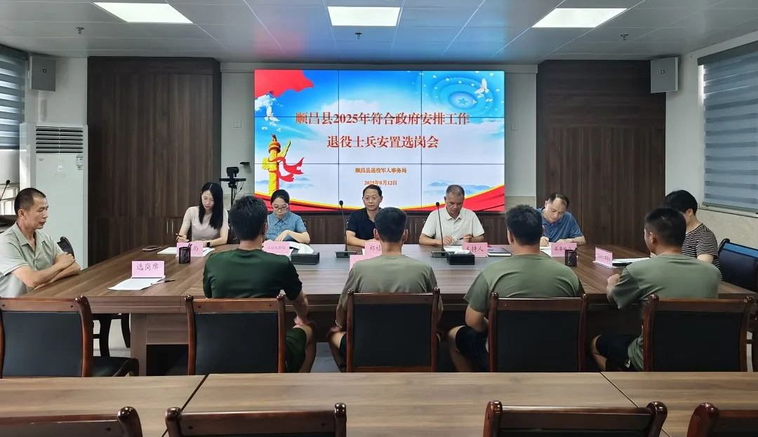 近日,南平市延平区退役军人事务局召开2025年转业军士“阳光安置”选岗会。从编制池中为12名符合政策安置的转业军士核定专项岗位,按照1:1.25的比例设置15个专岗,并争取国企专岗8个,共计23个安置岗位。选岗会上,12名转业军士依据个人量化评分排序,从高到低依次自主选岗,当场公开选岗结果,纪检组对选岗全过程进行监督,本次选岗公开透明、组织有序,确保了安置工作公平公正,得到与会人员一致好评。 顺昌县