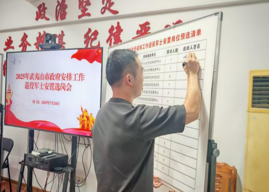 近日 我省多地陆续开展 2025年退役军人安置选岗工作 各地选岗均遵循公平、公正、公开原则 实现“阳光安置” 武夷山市