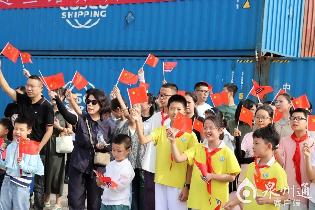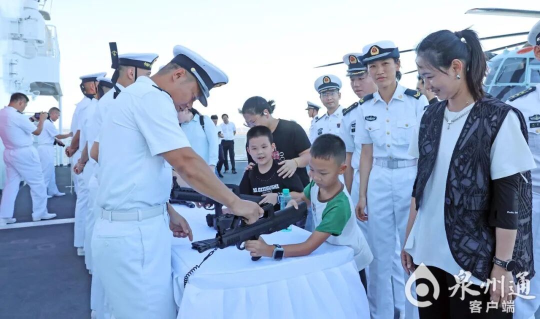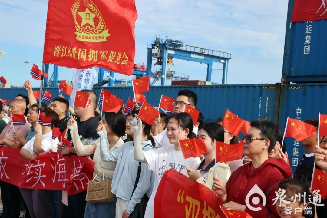 8月28日下午4时许,海军“丝路方舟”号医院船停靠泉州港。在接下来的几天时间里,“丝路方舟”号医院船将与共建城市泉州开启“城舰永相依 共续海丝情”一系列共建活动。(陈小阳 摄) 当天下午4时许,船身悬挂着“爱我人民爱我军 爱我家乡爱我舰”“向家乡亲人问好”等红色横幅的海军“丝路方舟”号医院船踏浪而来,缓缓驶近码头。岸上,激昂的《欢迎进行曲》响起,一场准备已久、热烈欢快的欢迎仪式瞬间被“引燃”。泉州党政机关有关领导,泉州军分区、泉州市退役军人事务局等相关部门干部以及各界群众代表等近200人挥舞着旗帜,热烈欢呼,以饱满热情共同迎接“丝路方舟”停靠泉州港这一历史时刻。 欢迎仪式结束后,军地领导及各界群众受邀登舰参观,在官兵的指引下,走进舱室,参观荣誉墙、手术室、诊疗室、驾驶室等,深入了解海军“丝路方舟”号医院船入列以来的发展历程和壮美航迹,近距离感受这艘“大白船”的独特魅力。