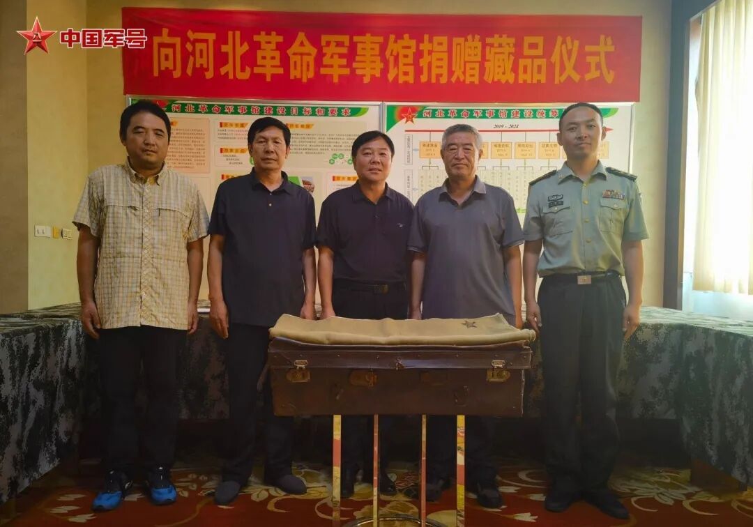 2024年8月1日,李斌(左三)向河北革命军事馆捐赠外公赖官宜烈士的遗物。