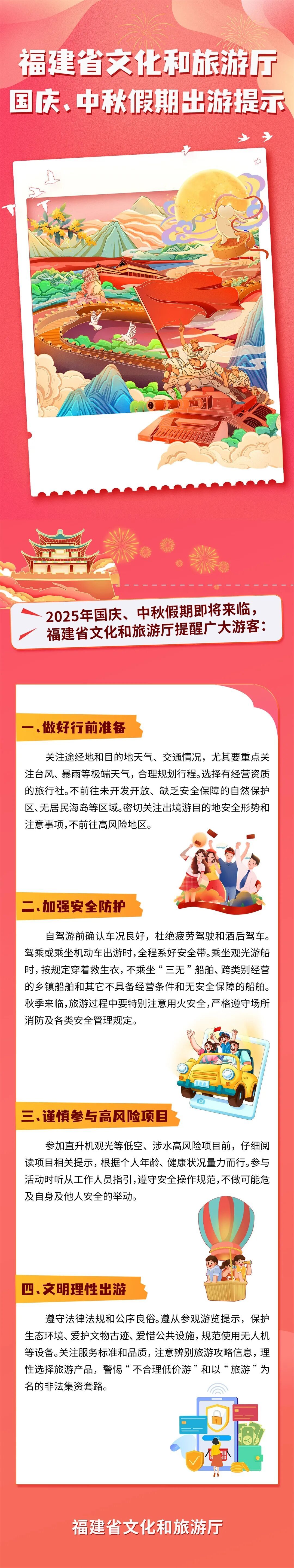 福建省文化和旅游厅国庆、中秋假期出游提示