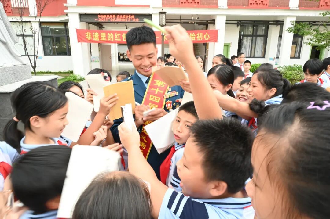 “颜叔叔,可以给我签个名吗?”“我也要合影!”……9月29日下午,漳州市巷口中心小学的校园里,一场别开生面的“追星”热潮正在上演。同学们簇拥着的“明星”,不是娱乐偶像,而是他们的学长——第十四届全国见义勇为模范、二等功臣退役军人颜国庆。他受邀回到母校,参加“弘扬抗战精神 共筑国防长城”全民国防教育月活动。这一刻,校园不仅是教育的场所,更成为传承红色精神、点燃报国梦想的生动课堂。
