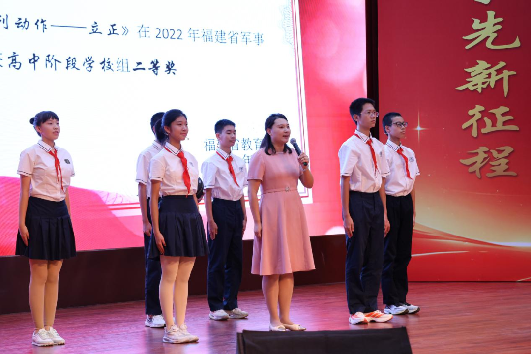 2020年度全国“最美退役军人”、福州市鼓楼区三坊七巷消防救援站副站长张天水作宣讲 现场气氛庄重而热烈,榜样们的感人故事引发全场深切共鸣,掌声多次响彻会场。活动中,集美大学沐音合唱团献唱《红旗飘飘》《如愿》等歌曲,用歌声传递爱国情怀,为宣讲增添了浓厚氛围。