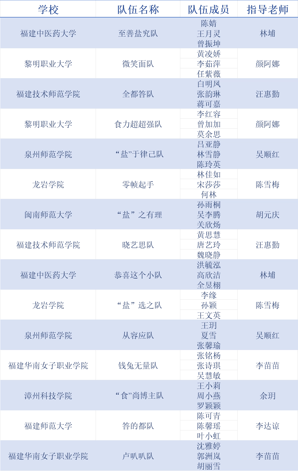 祝贺以上入围及获奖的队伍 决赛将于11月2日下午在漳州举行 敬请期待 作为本次竞赛的协办方,福盐集团深感使命光荣、责任在肩。我们相信,推动食品科学知识的普及,是保障公众健康、提升社会整体福祉的重要一环。未来,福盐集团将继续秉持“服务民生健康”的宗旨,在确保为广大消费者提供安全、优质、健康食盐产品的同时,持续支持并参与各类科普公益活动,为提升福建省食品安全与公众营养健康水平,贡献更多的“福盐”力量。 |