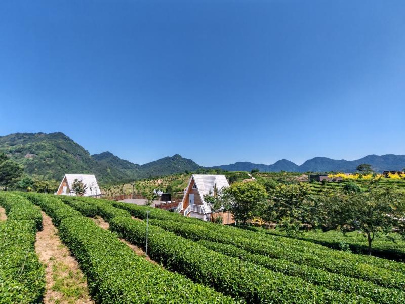 坐落于永泰810米高山茶海间的草木谷,是一片被千亩绿意包裹的闽台农业融合发展产业园。这里以“茶旅融合”为支点,从龙井与金牡丹的有机种植,到茶饮、茶膳的深度开发,再到露营、研学、文创的业态延伸,一条完整的茶主题体验链条,让每一位访客都能深度沉浸茶之美。